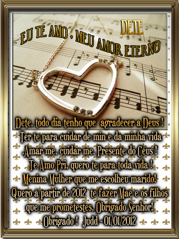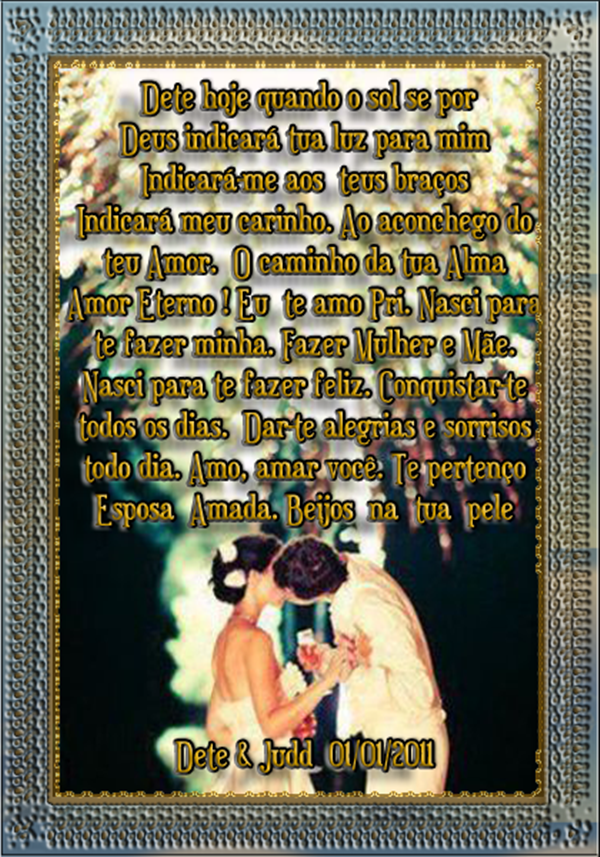ESCREVO O MEU AMOR, PAIXÃO E TESÃO. ÁS VEZES FAÇO AMOR TREPO E TRANSOCOM MINHAS PALAVRAS E TEXTOSE LETRAS. TUDO PARA UMA ÚNICA MULHER, MINHA ESPOSA,MINHA DONA DE CORPO E ALMA, MINHA VIDA, MEU TUDO,MEU PORTO SEGURO. FELICIDADE EXISTE ! MORA NA MINHACASA, DORME NA MINHA CAMA E GOZA NO MEUPAU, E, TEM NOME..ATENDE POR DETE ... E A MIM PORDÉEH, PRI, TETUDA, GOOXTOSA E P_TTINHA.JUDD MARRIOTT